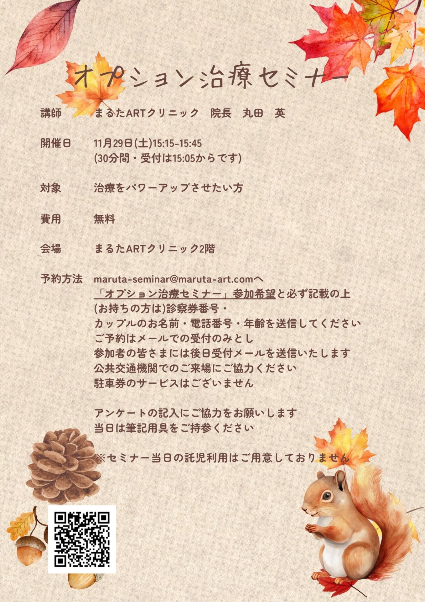 11月29日「8000年の秋」「オプション治療」セミナー開催のお知らせ