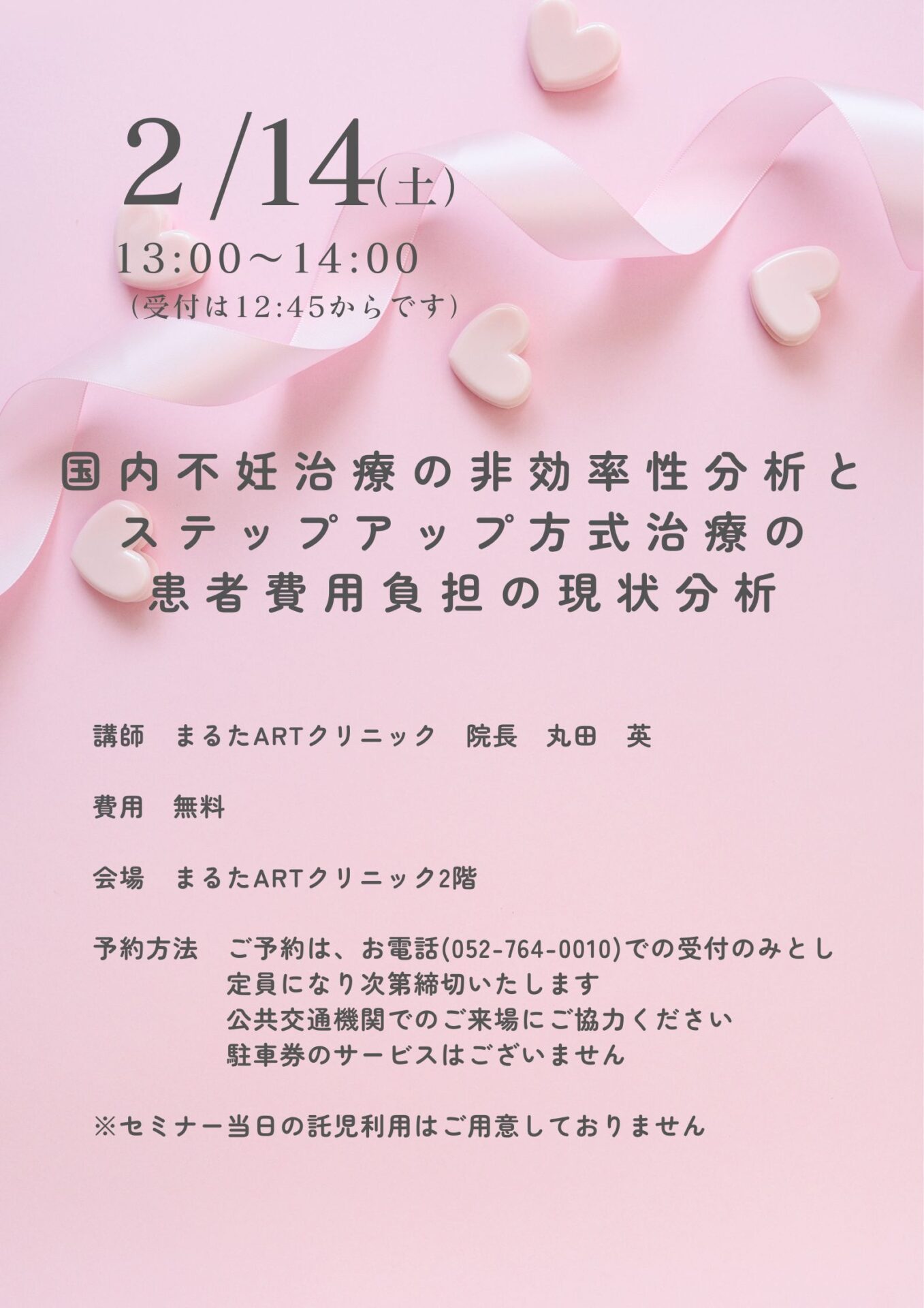 国内の不妊治療の非効率性の分析と従来のステップアップ方式で治療した場合の患者費用負担の分析をセミナーでお伝えします。この分析により、どのように治療を進めることが効率の高い治療といえるのか、どのように考えれば費用負担ができる限り軽減できるかをお伝えします。特にこれから不妊治療を始める方にとっては、今知っていただくことで不妊治療に対する考え方が変わるのではないでしょうか。